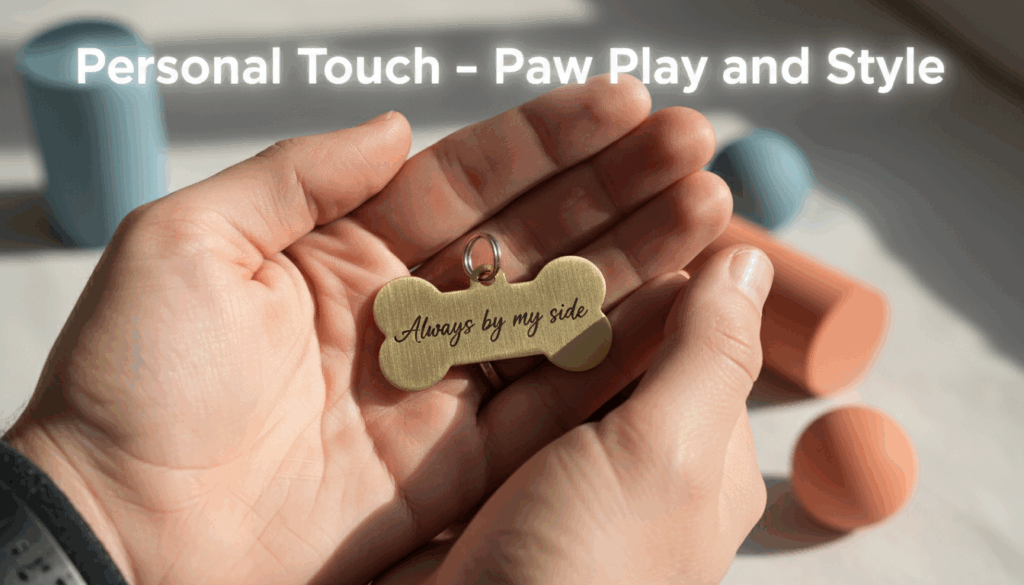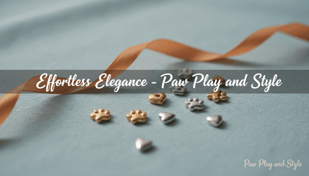 Picture small gold or silver name tags, tiny paw or heart symbols, and light stainless steel pendants that shine softly without making sound. They look perfect with pastel or neutral collars and add just the right amount of polish to your pet’s style.