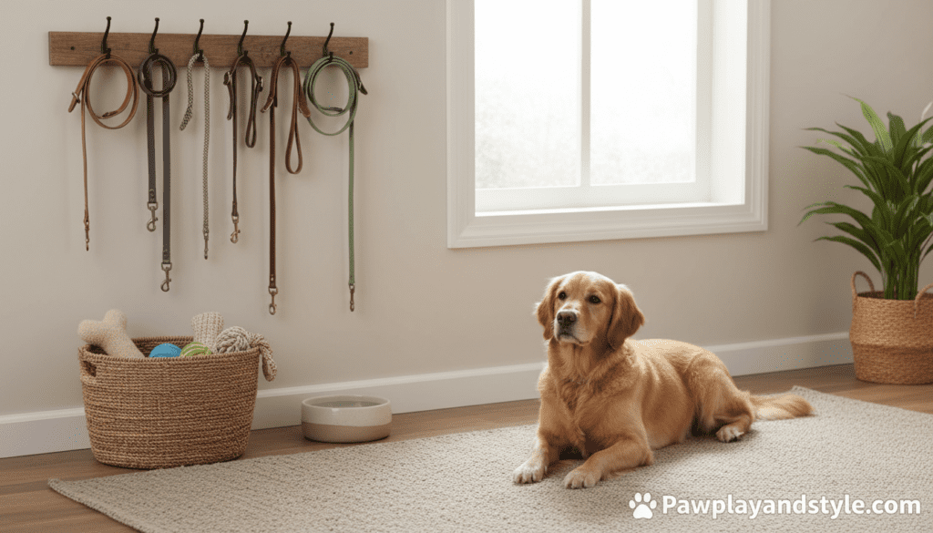 Leash hooks near the door make walks faster and prevent last-minute searching.