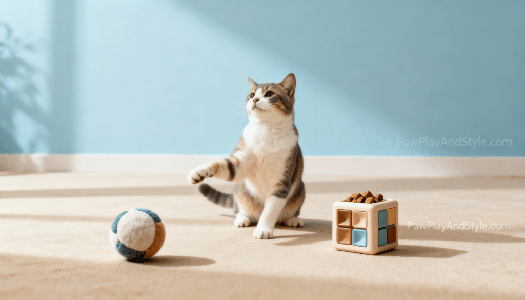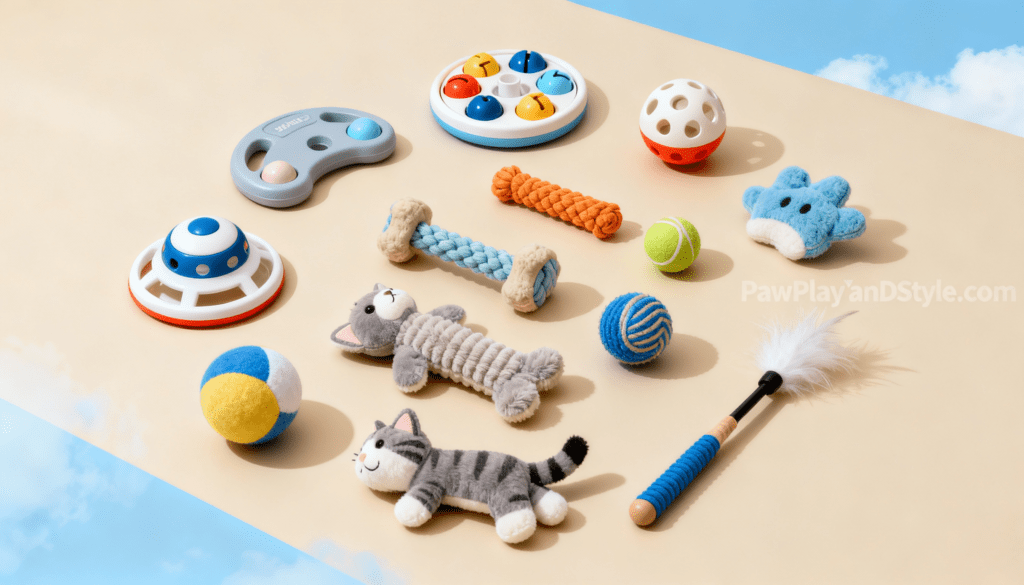 Use a mixture of puzzle toys, treat releasing toys, balls, plush toys, and wand toys. Store some toys away and reintroduce them later so they feel new again. This simple method keeps curiosity high and prevents boredom.