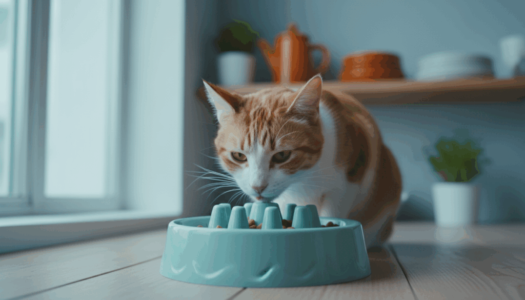 If your cat eats too quickly, using slow feeder bowls or puzzle feeders can make a big difference. These products encourage your cat to work a bit for their food, which slows down eating, improves digestion, and provides extra mental stimulation during mealtime. This simple change can help prevent vomiting, bloating, and other digestive issues that often happen when cats eat too fast.