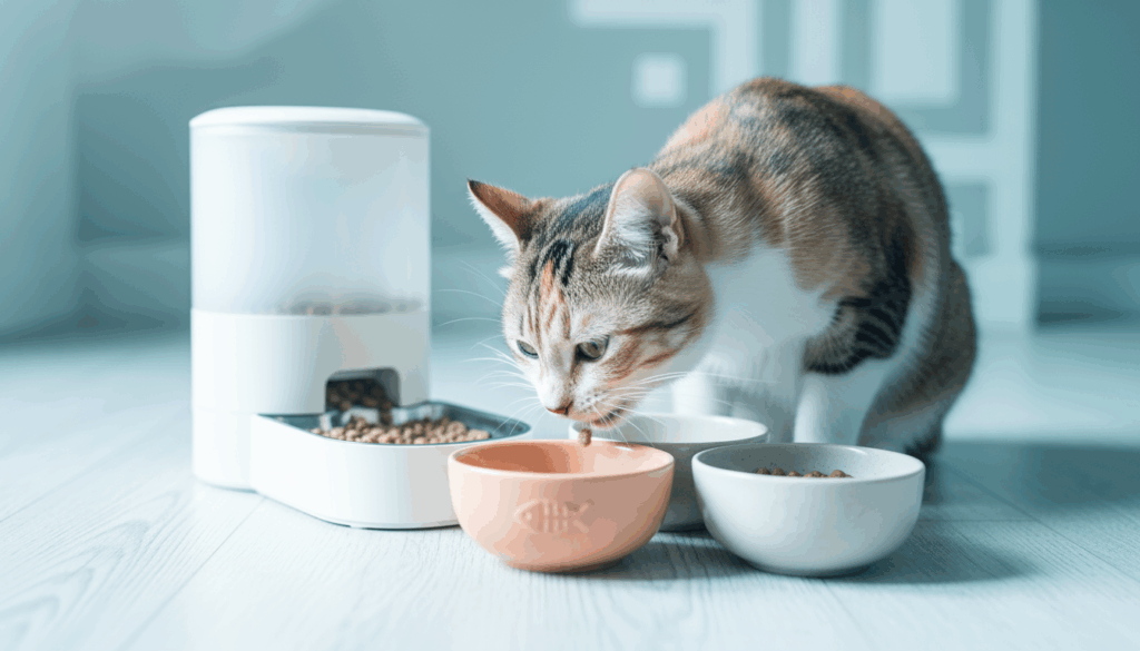 Feeding your cat smaller meals more frequently throughout the day can help reduce vomiting. Large meals encourage gulping and swallowing too much air, which leads to regurgitation. Dividing their daily portion into 3–4 smaller meals helps digestion and keeps their stomach from overfilling. Automatic feeders are especially helpful for maintaining a consistent schedule, even when you’re not home.