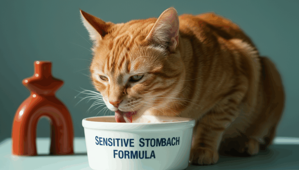 Sometimes frequent vomiting is caused by food sensitivities or ingredients that are hard on your cat’s stomach. Switching to a limited-ingredient or sensitive-stomach formula can make a big difference. When changing diets, transition slowly over 7–10 days to avoid further tummy issues.